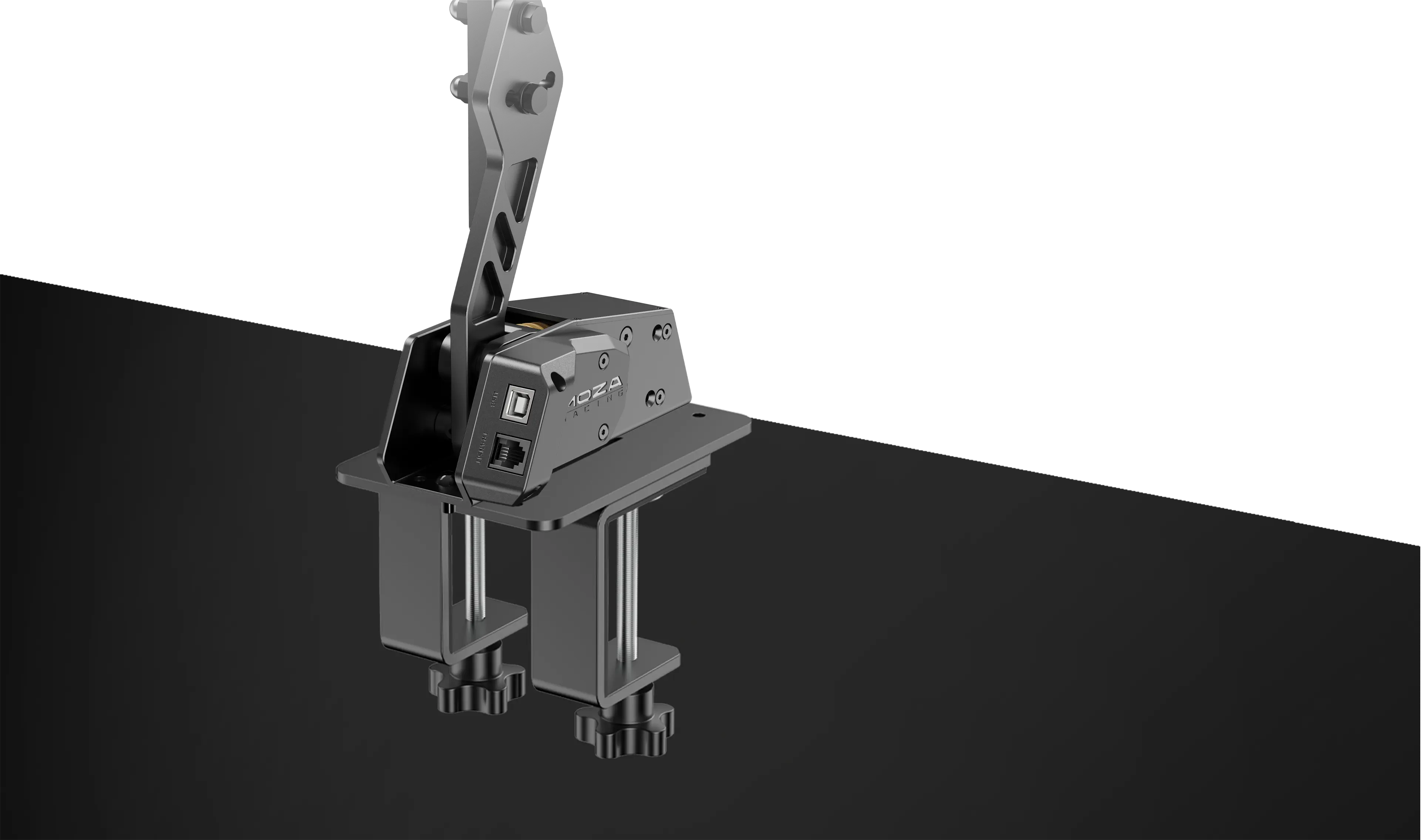 A horizontally or vertically mounted lever simulates both road and race cars, angles are adjustable according to personal needs.