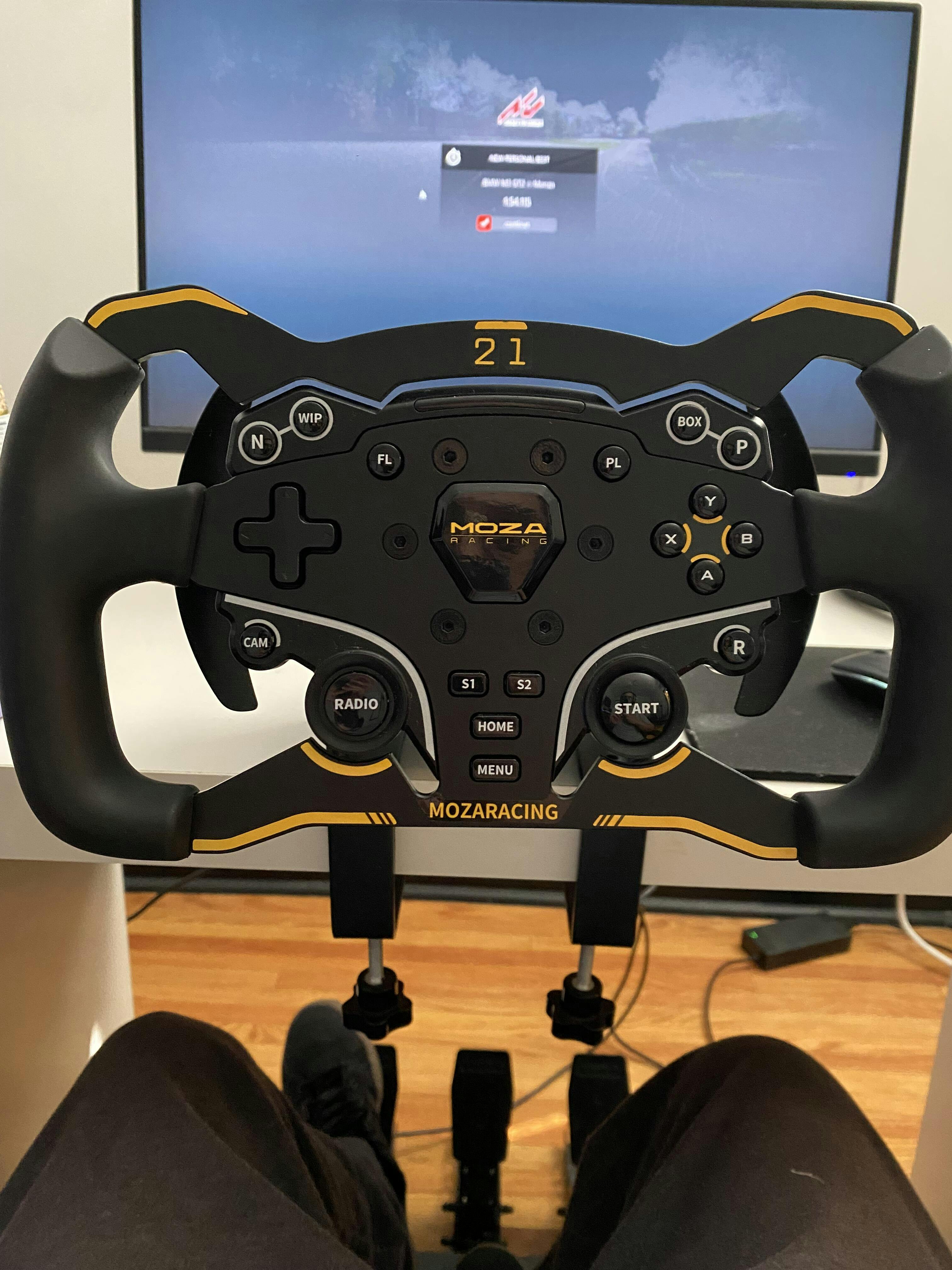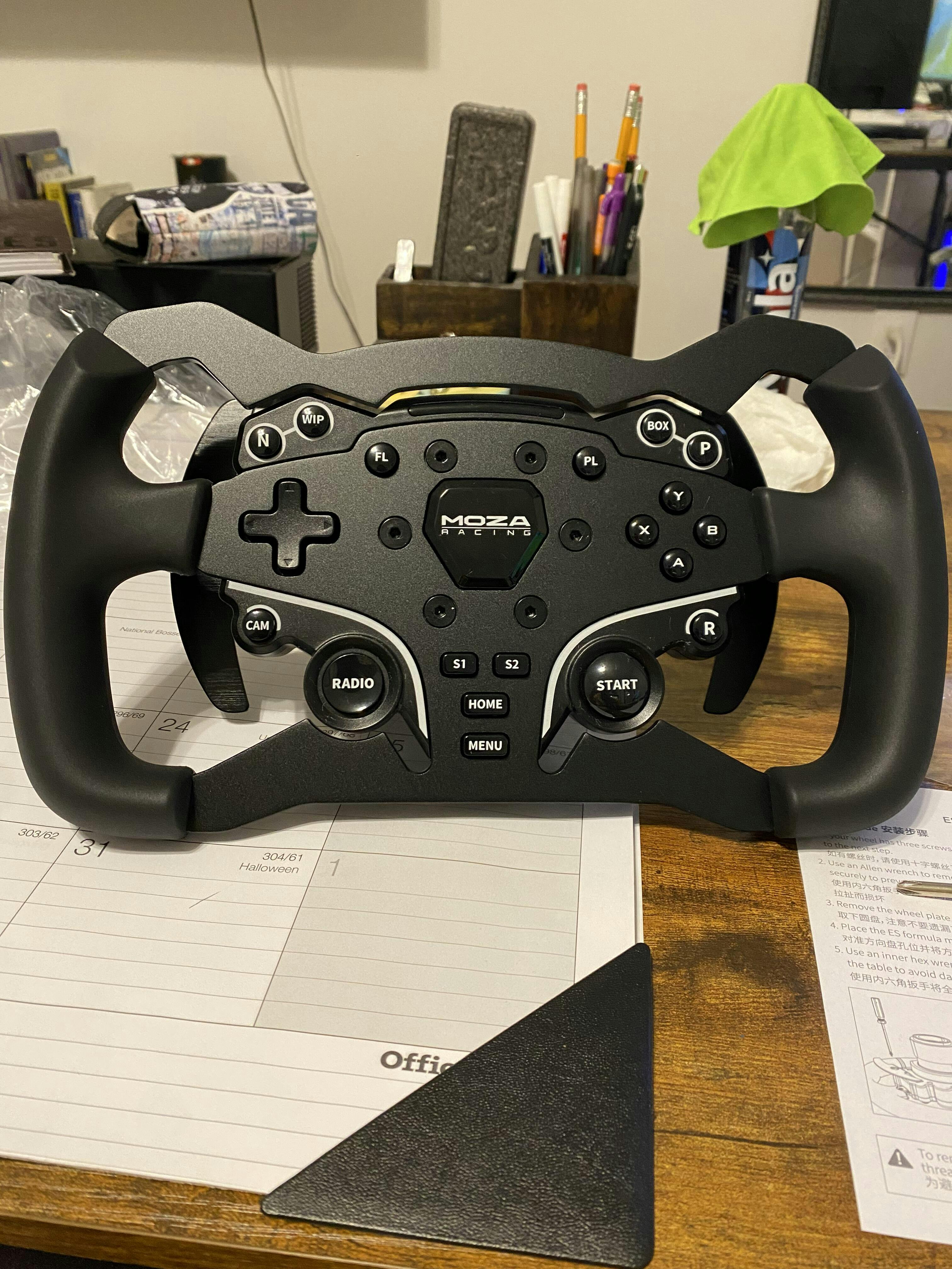 Upgrade your MOZA ES wheel with the 280mm Formula Wheel Mod. Crafted from aviation-grade aluminum with comfortable rubber grips for precise and immersive racing.