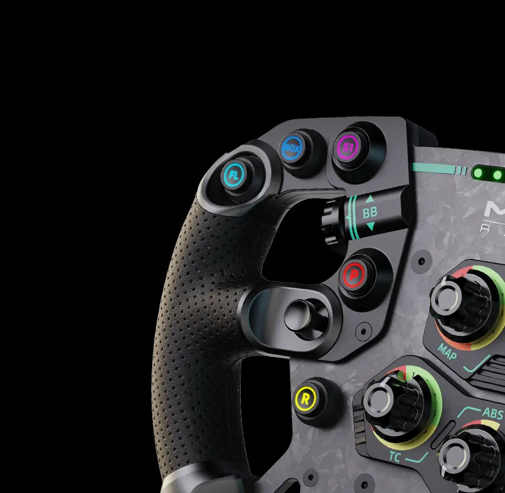 Dominate the track with the MOZA GS GT Wheel, the ultimate sim racing steering wheel—experience luxury and comfort with its Microfiber Leather construction. The stylish forged carbon fiber case ensures sturdiness without sacrificing aesthetics. With magnetic and photoelectric sensors, every motion is flawlessly captured. Enjoy the accuracy of its programmable mechanical keyboard buttons and the seamless transitions provided by its customized quick-release offers. Keep control over your race with the RGB shift indicator and push your experience beyond limits.