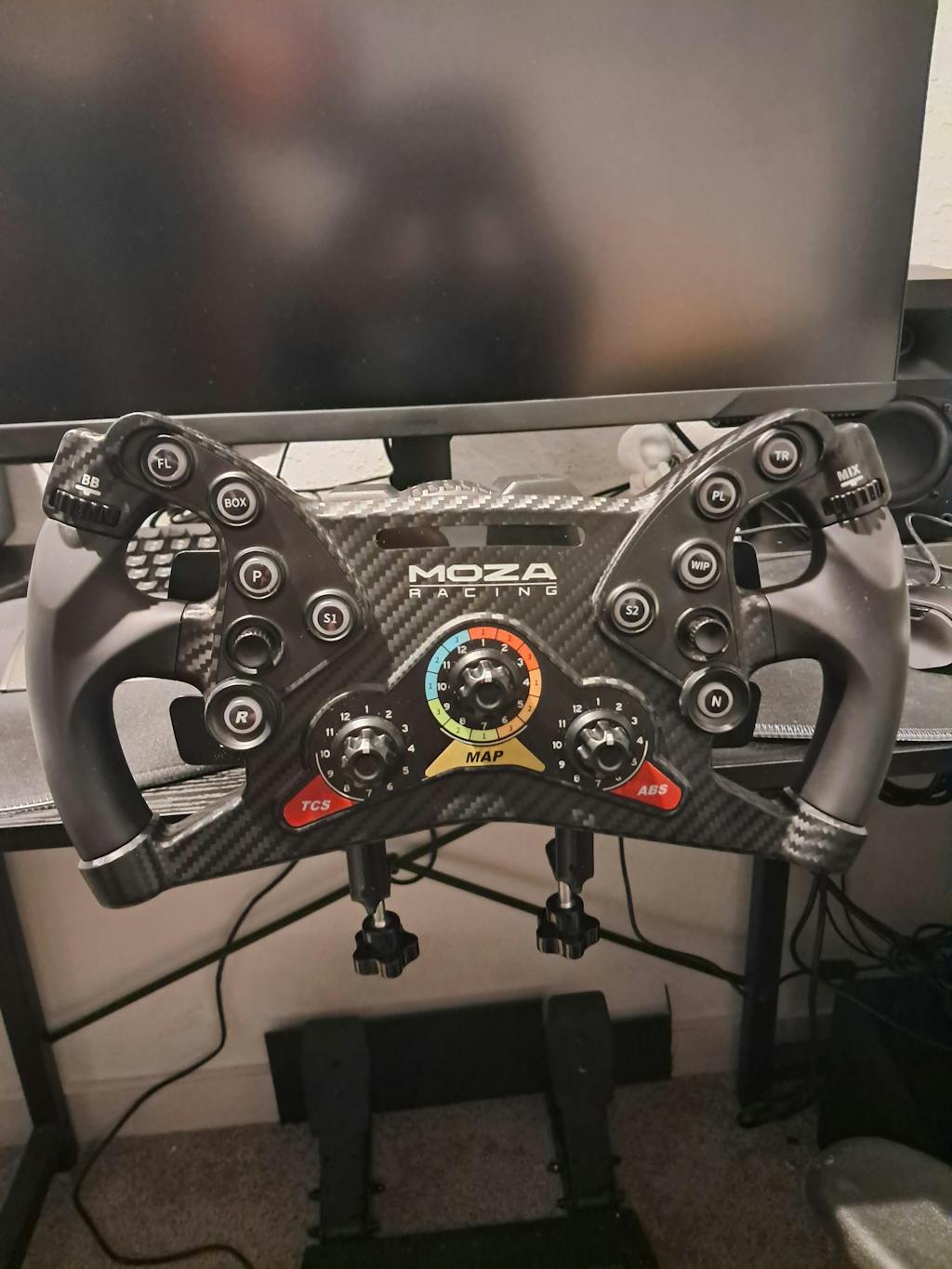 Introducing the MOZA KS Sim Racing Steering Wheel, a brand-new offering designed specifically for GT enthusiasts. This 300mm butterfly-style GT wheel brings the thrill of the track to your fingertips. Crafted with carbon fiber-reinforced composites and TPE rubber grips, it combines durability and comfort for a superior racing experience. The programmable short-travel RGB buttons enable personalized controls and precise input accuracy. With hall sensor magnetic paddles featuring dual clutch functionality, gear shifts are seamless and precise. Embrace an open ecosystem with compatibility across all MOZA non-wireless bases and 3rd party wheelbases via our MOZA Universal Hub Kit PC adapter. Enjoy the efficiency of the Real Racing QR system and take full control with the MOZA Pit House Control Suite.