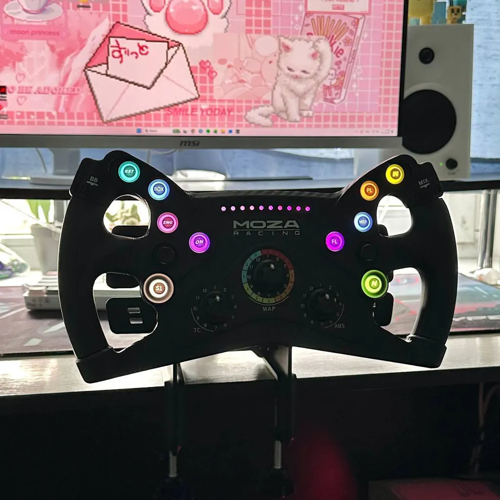 Introducing the MOZA KS Sim Racing Steering Wheel, a brand-new offering designed specifically for GT enthusiasts. This 300mm butterfly-style GT wheel brings the thrill of the track to your fingertips. Crafted with carbon fiber-reinforced composites and TPE rubber grips, it combines durability and comfort for a superior racing experience. The programmable short-travel RGB buttons enable personalized controls and precise input accuracy. With hall sensor magnetic paddles featuring dual clutch functionality, gear shifts are seamless and precise. Embrace an open ecosystem with compatibility across all MOZA non-wireless bases and 3rd party wheelbases via our MOZA Universal Hub Kit PC adapter. Enjoy the efficiency of the Real Racing QR system and take full control with the MOZA Pit House Control Suite.