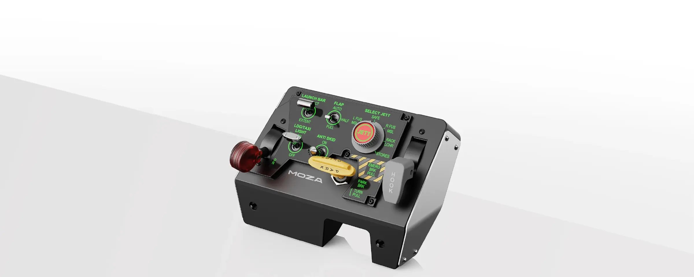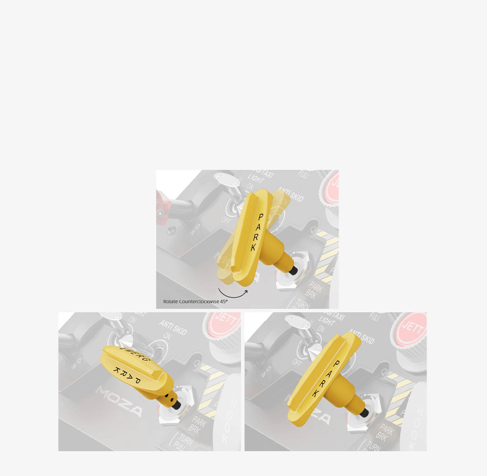 The lever is fully programmable — while designed to replicate a fighter jet parking brake or tailhook release, it can be assigned to any in-game command, making it versatile for both civilian and combat aviation.