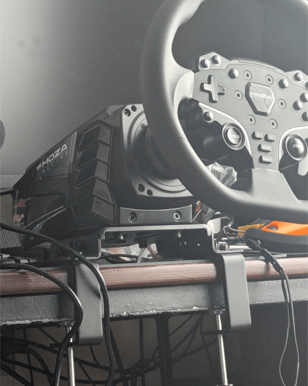 Crafted from high-strength CNC-machined steel, this desk clamp mount delivers exceptional rigidity and durability. The precision multi-angle adjustment ensures a stable and comfortable driving position, while the space-saving clamp design securely fits a wide range of desk thicknesses. With selected components also supporting aluminum profile rig mounting, it offers a versatile installation solution for MOZA R5, R9, and R12 direct drive wheel bases.