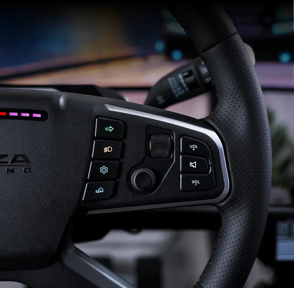 Discover the MOZA TSW Truck Wheel, engineered for an unparalleled truck simulation experience. With its classic four-spoke design and standard 400mm diameter, this wheel brings the authenticity of a truck’s control into your hands. The rim, wrapped in hand-stitched microfiber leather, offers a blend of comfort and grip, while the aerospace-grade aluminum frame guarantees long-term durability. Equipped with customizable RGB buttons and LED lights, it allows for extensive personalization. Compatibility with all MOZA bases, as well as third-party systems through a universal adapter, ensures a seamless fit into any setup. Enhanced by its high-strength steel construction and versatile adjustment options, the MOZA TSW Truck Wheel is the definitive choice for simulation enthusiasts seeking depth, functionality, and an immersive driving experience.