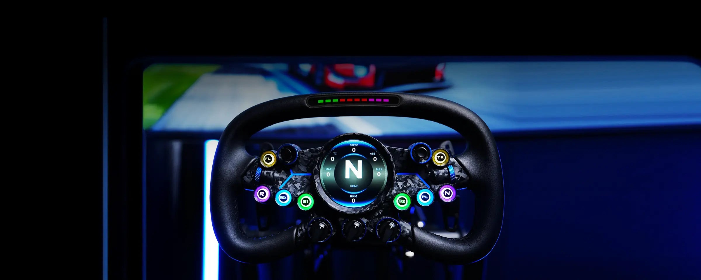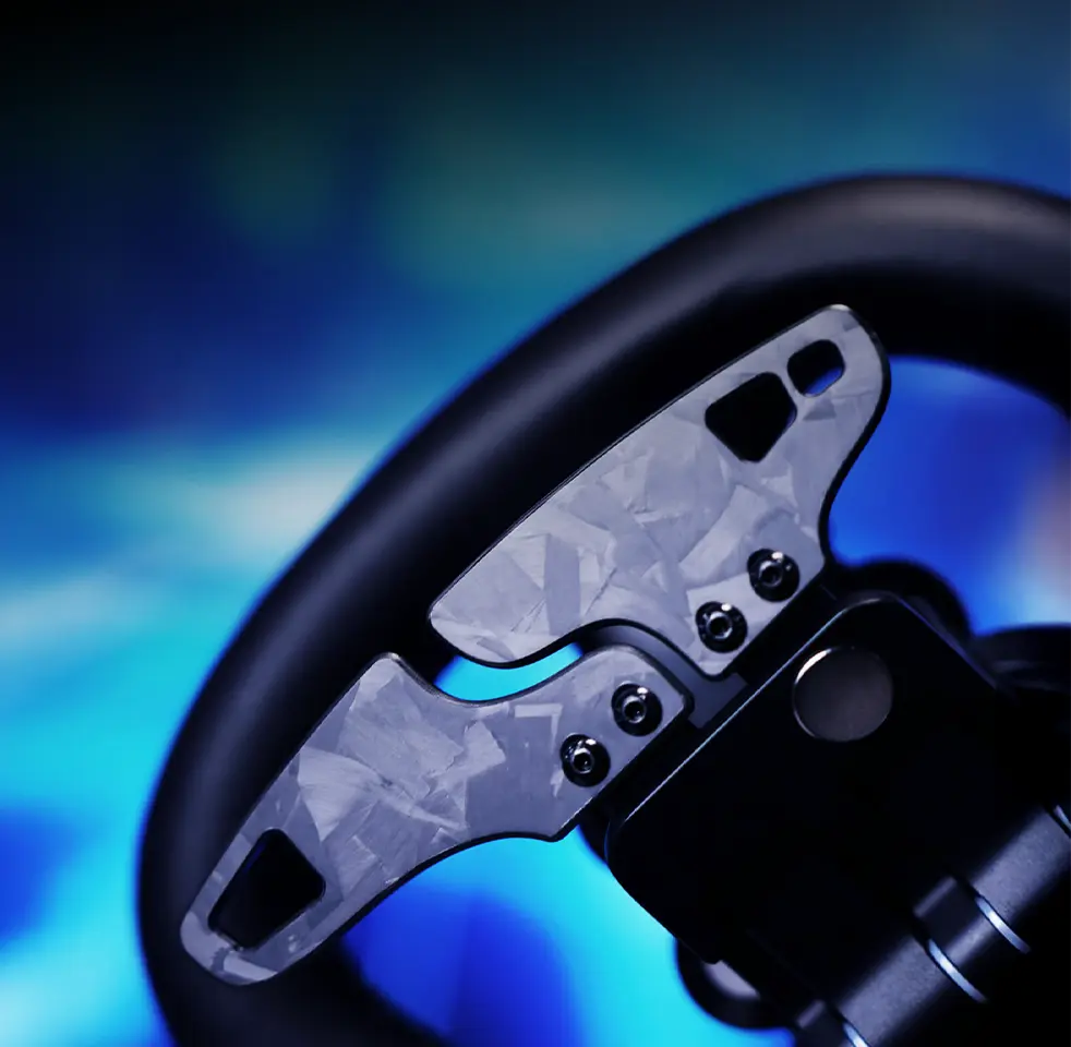 Experience unparalleled control and futuristic design with the MOZA Vision GS Wheel. Measuring 310mm, it features a 2.85-inch HD circular touch screen, a customizable UI, and a quad-core processor for real-time display rendering. Crafted from aerospace-grade aluminum and carbon fiber, it boasts a robust construction with hand-stitched microfiber leather grips. The wheel includes top-mounted RPM indicators, short-travel RGB buttons, and 72 programmable inputs. Compatible with all MOZA bases and third-party systems, it offers seamless connectivity through conductive slip rings. Elevate your racing with the MOZA Vision GS Wheel.